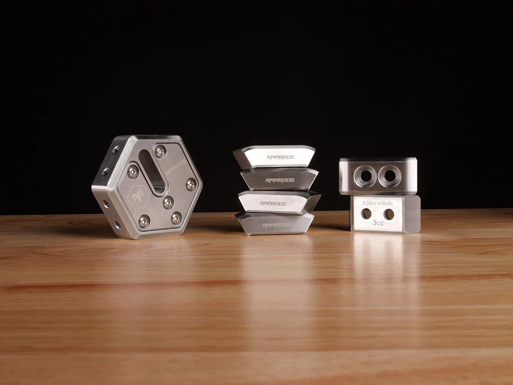 At the core is a tungsten-filled base designed to actively reduce vibration and refine shot feel. Around it, a fully modular system of removable weight segments allows you to build your setup from 20 to 40 ounces in precise increments. Combined with a slotted mounting interface, HEX gives you meaningful control over vertical position and balance tuning.